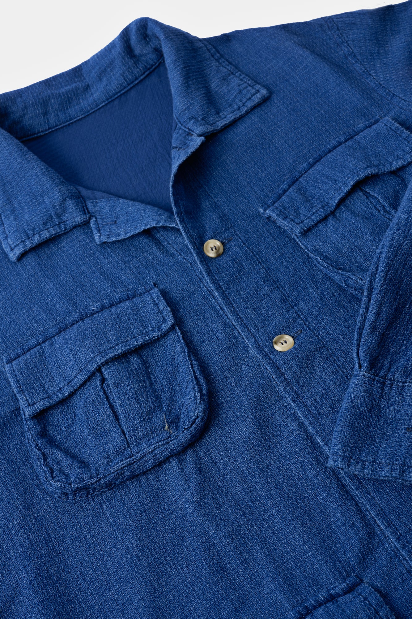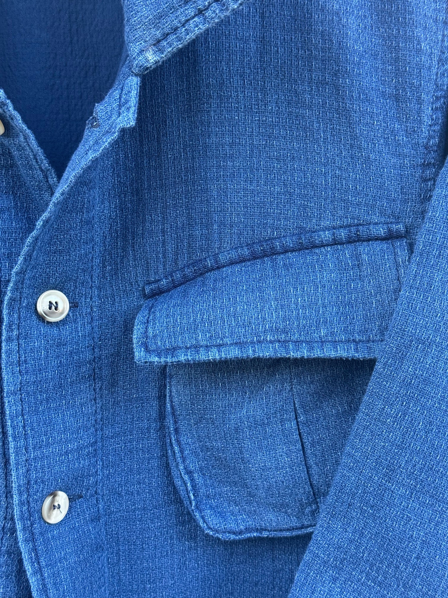 This is a shirt in the style of the American army jungle garments but made from denim fabric simillar to the vintage denims from the 20th century used on the work wear.